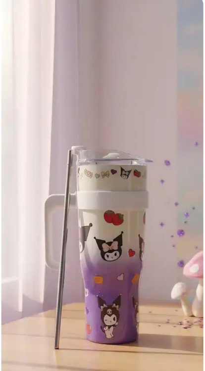 هیدراته موندن با استایل! 🥤 این تراول ماگِ Kuromi تمام چیزیه که برای روزمرهت نیاز داری. طراحی دوجداره برای حفظ دما، دسته راحت و نی استیل.